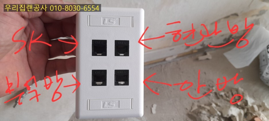 부엌 안쪽방과 현관옆방쪽으로 랜케이블 2회선 날렸습니다.